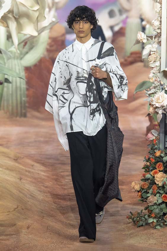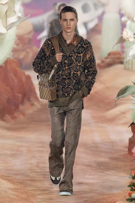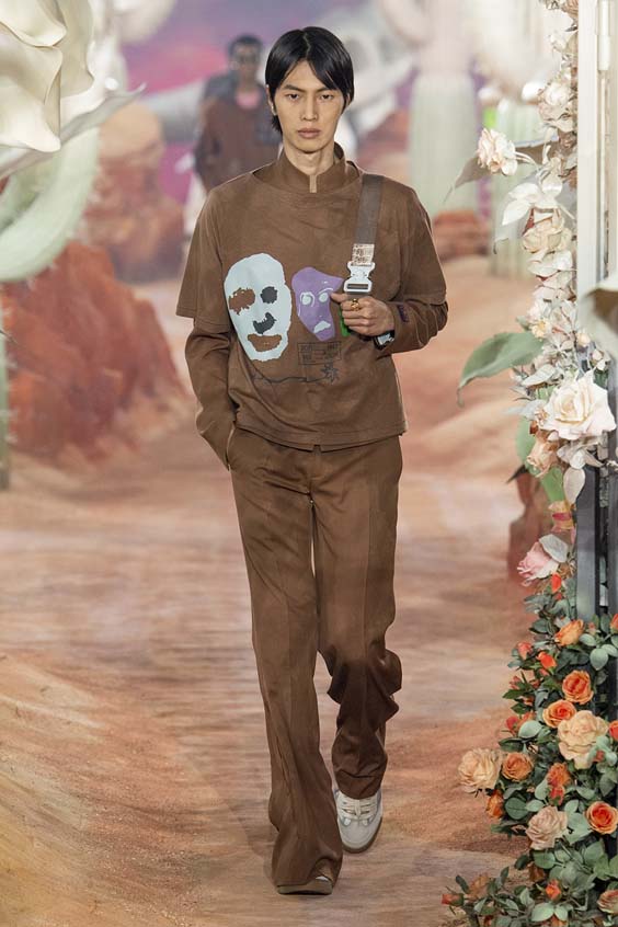 Một bộ sưu tập hoành tráng của Dior đã được dự báo kể từ khi nhà mốt này công bố kế hoạch hợp tác bom tấn với nghệ sĩ nhạc hiphop Travis Scott. Xuất hiện cùng nhau cuối buổi trình diễn, ‘cái bắt tay’ giữa rapper Travis Scott và nhà thiết kế Kim Jones đã đánh dấu một hướng đi mới cho Dior khi lần đầu tiên hợp tác cùng một nghệ sĩ trong bộ sưu tập đầy đủ. Âm nhạc trong suốt show diễn cũng được sản xuất bởi Scott với các tác phẩm mới nhất của anh.