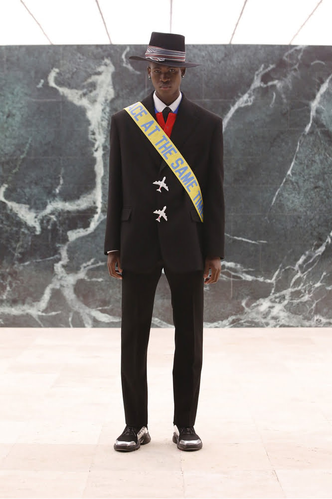 Bộ sưu tập Louis Vuitton Men Thu Đông 2021, ngoài việc diễn tả thế giới quan của Virgil Abloh còn trung thành với tôn chỉ của Louis Vuitton: Đam mê dịch chuyển. Trong một thế giới bế quan tỏa cảng, khao khát được đi du lịch lan tỏa qua những thiết kế có phần ngộ nghĩnh của bộ sưu tập. Nút áo khoác hình máy bay. Chiếc túi Louis Vuitton Keepall được chế tác thành một chiếc máy bay mini. Những phụ kiện đi kèm là vật phẩm thường thấy trên tay của dân tourist, như cốc cà phê, tờ báo đọc dở.