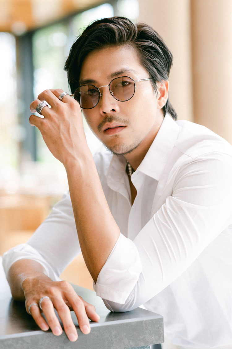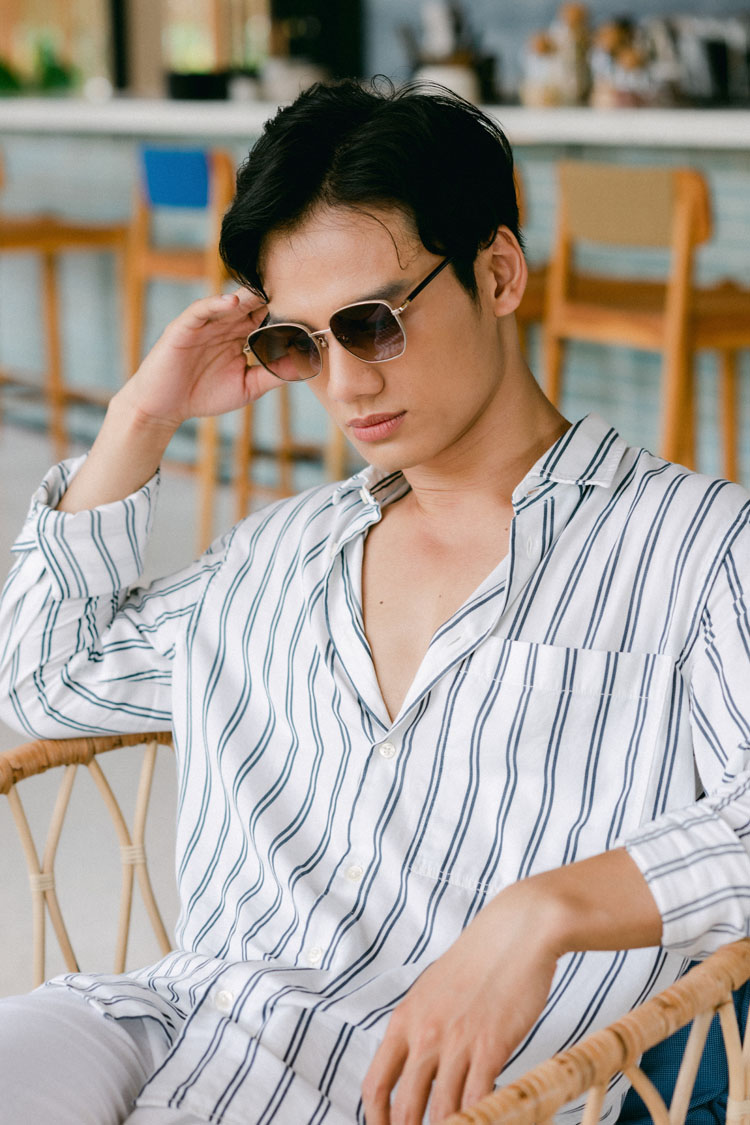 Khác với hai chàng trai kia, Lừng Nguyễn – anh chàng lãng tử với gương mặt trái xoan thanh thoát lại chọn cho mình chiếc kính mắt mèo. Với phong cách vui tươi, năng động, Lừng Nguyễn tự tin thể hiện thần thái không góc chết của mình với chiếc kính mát OWNDAYS.